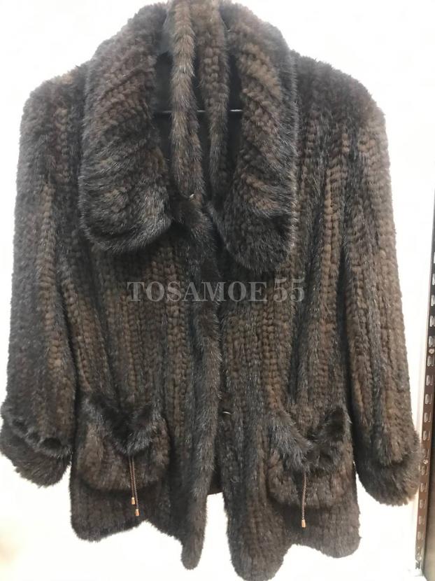 Жакет из вязаной норки с отложным воротником